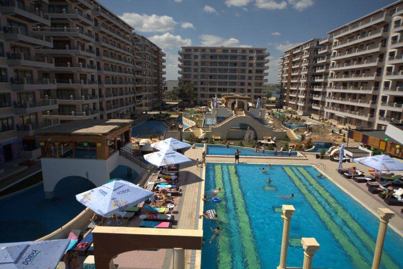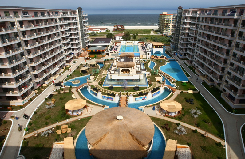 Hotelul asigura peste 1.200 de locuri de cazare, in 420 de apartamente, o parcare securizata cu 400 de locuri, restaurante. baruri, terase, cafenea orientala, piscine si cascade, locuri de joaca pentru copii, club de biliard, centru de jocuri, centru Spa, sala fitness, teren de fotbal. Are plaja private cu punct de salvamar, sezlong – 10 lei/pers, umbrela gratuit. Complexul pune la dispozitie mai multe piscine exterioare si jocuri de apa care ocupa un perimetru de 10.000 de mp.